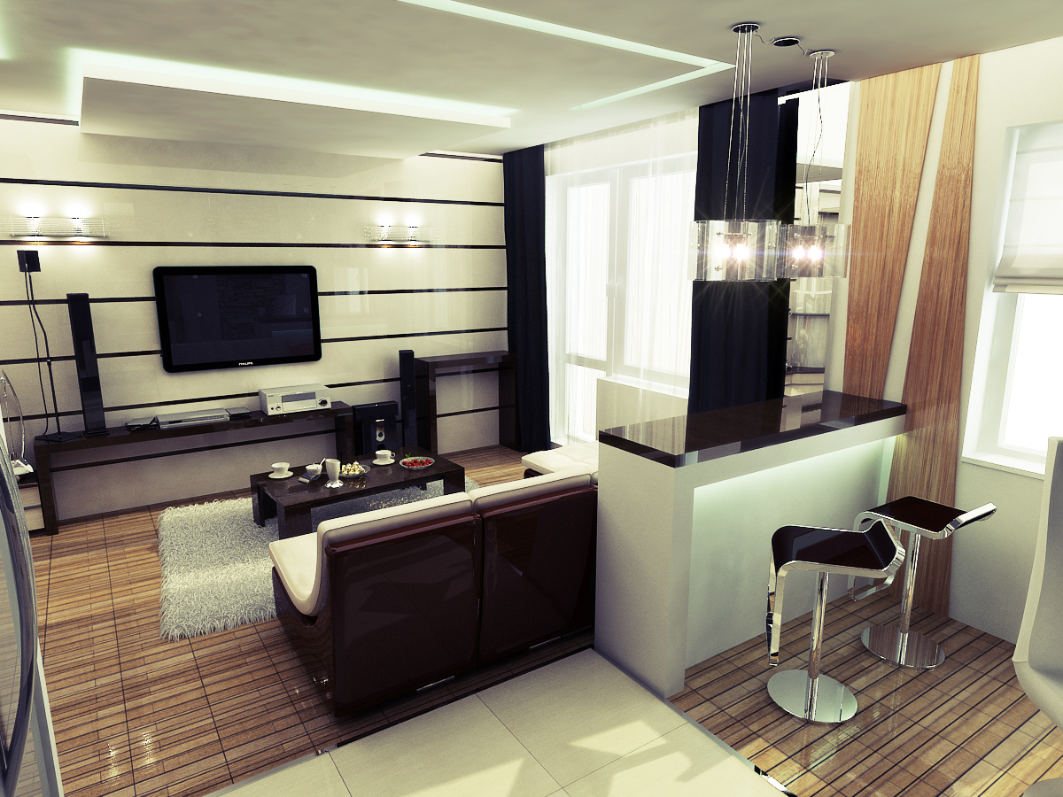 Bar counter for the kitchen combined with the living room