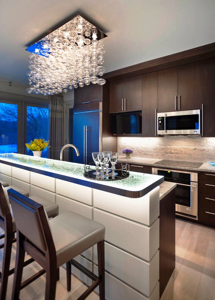 Previously, bar counters were used only in bars where you could relax, relax and have a drink. Today they moved to the kitchens at home, took root and became the hallmark of modern interiors. The bar counter for the kitchen can have different shapes and styles. Functionality may also vary.