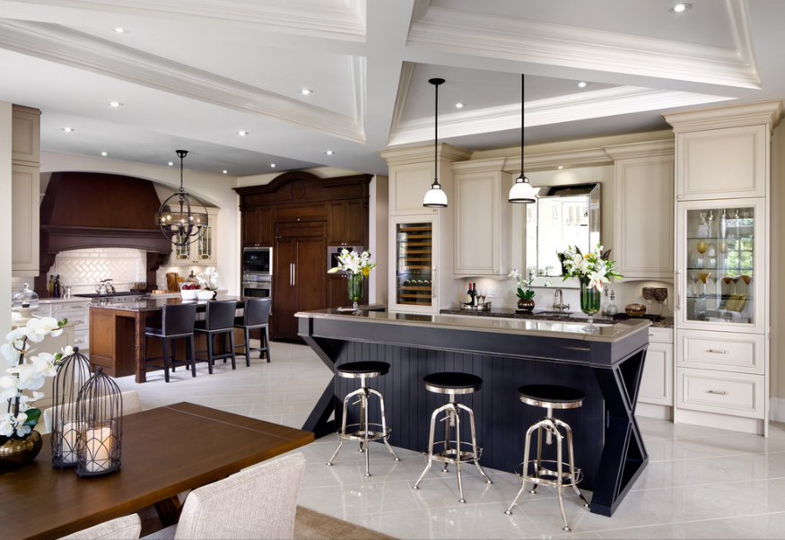 Classic bar counter fits perfectly in large kitchens