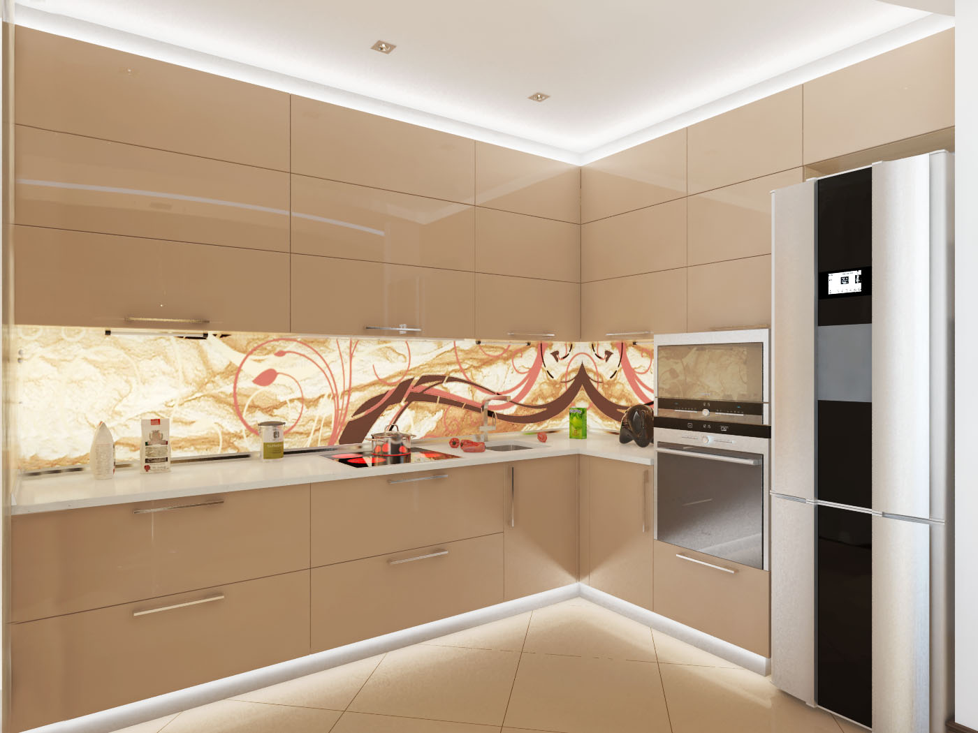 Kitchen design in beige color.