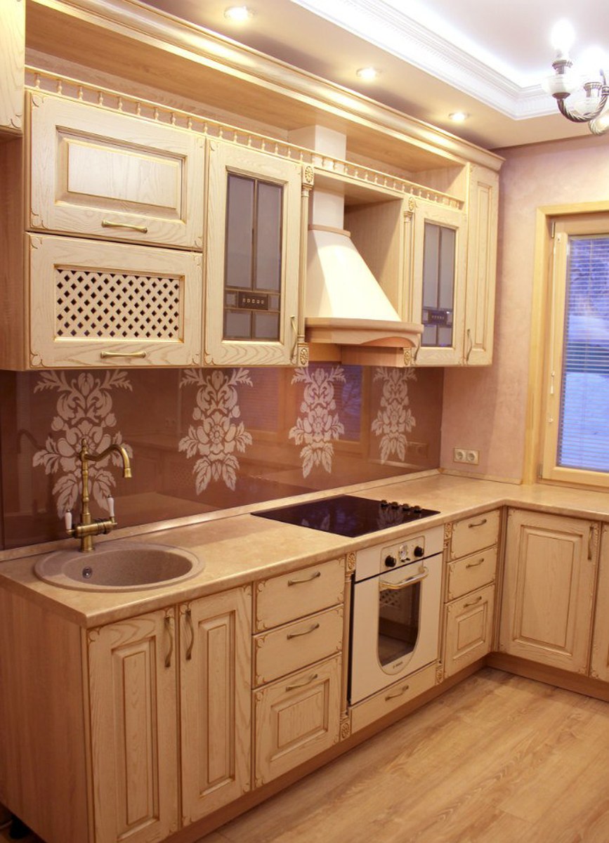 The light brown range requires good lighting, otherwise it looks too faded, and sometimes gloomy. It is also worth considering the coloring of household appliances. The ideal option is contrast, so the headset will look brighter and more interesting. You can choose any tone, including metallic.
