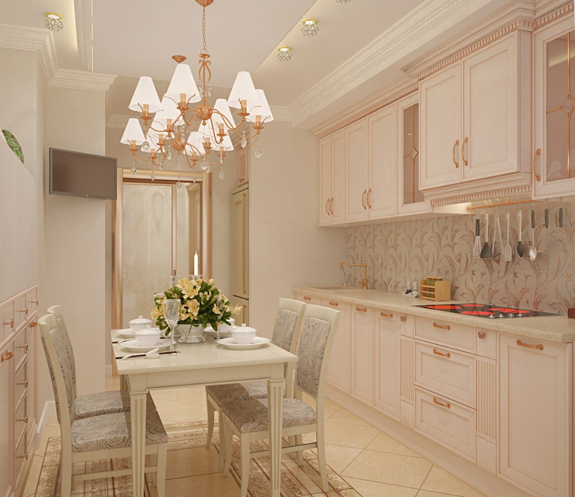The interior of the kitchen in beige tones has endless possibilities - you can “fit in” details of almost any color into it.