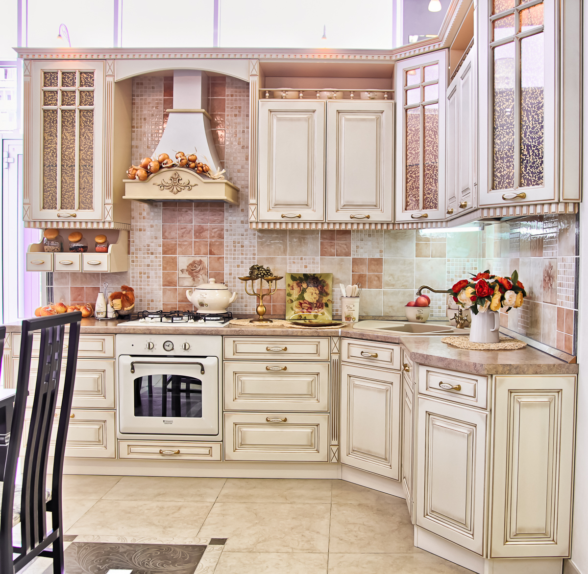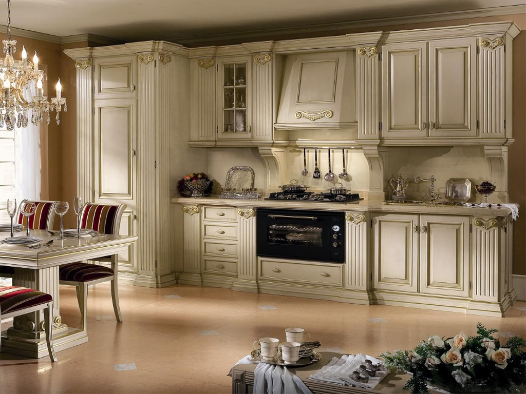The classics are refined, luxurious and at the same time simple. Furniture is distinguished by regular shapes and symmetrical proportions. Luxury in such a design is shown not so much by gilding, carving, etc., as by the high cost and quality of materials. The classic kitchen is expensive furniture made of wood. Metal fittings can be gilded or silver plated, brass, bronze.