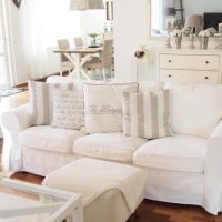 It is unlikely that you will find a sofa in the style of Provence with a luxurious finish, the absence of pathos - this is the main distinguishing feature. Strict lines are characteristic of them, and for their manufacture they take natural fabric of soft colors.
