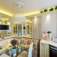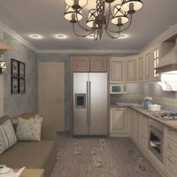 Classic sofa in the design of the kitchen-living room in the style of Provence.