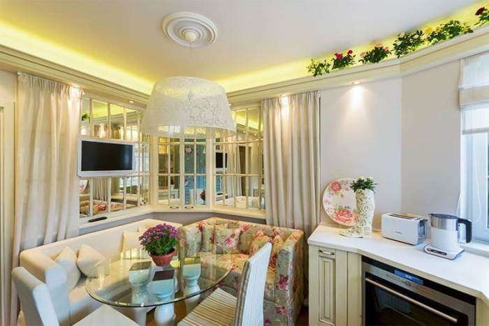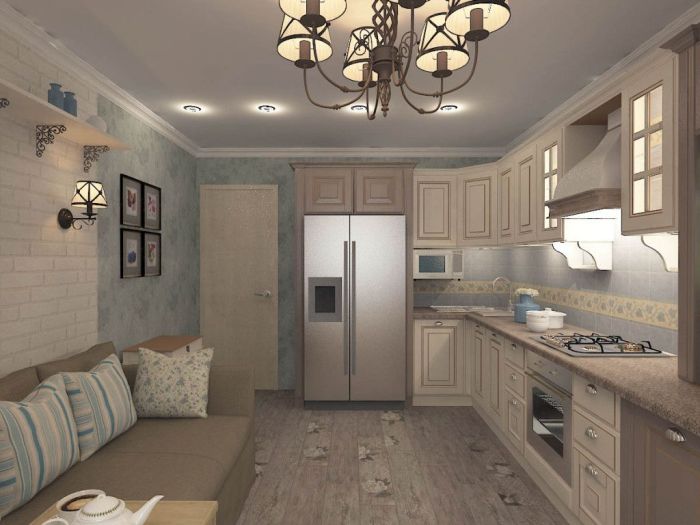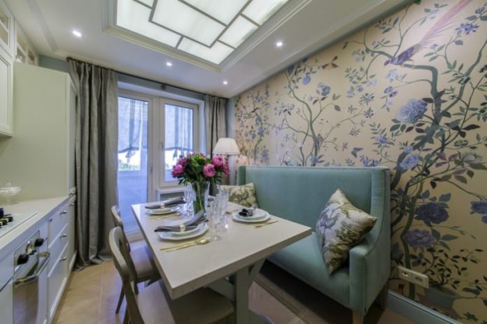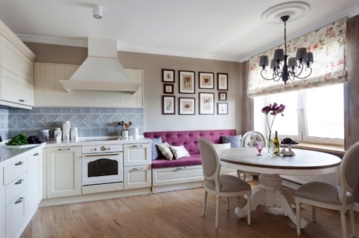 Sofa in the kitchen in provence style: variety, examples of placement, tips