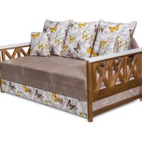 The model is characterized by a rectangular shape, a convex high back. They can be with armrests, there are options without them. The frame is made of wood, has two or more seats. For the back and seat, soft padding is used.