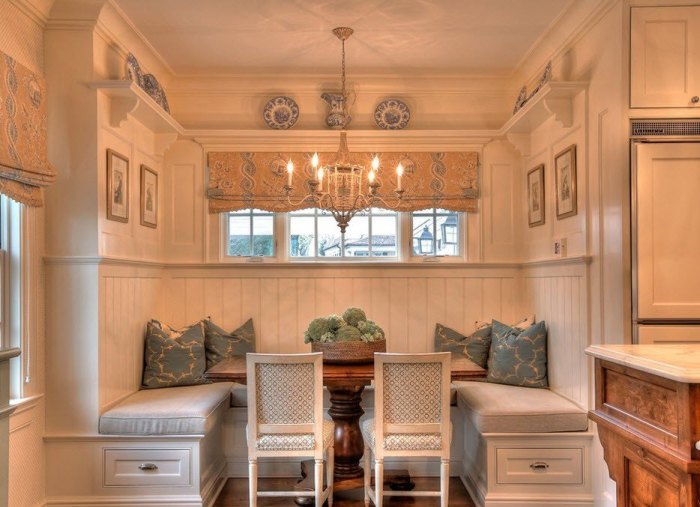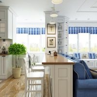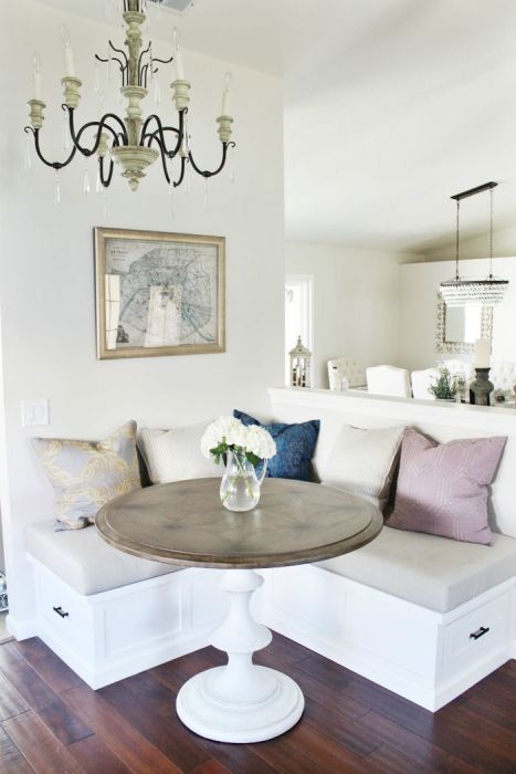 Although this type of furniture is not very common in the kitchen in our country, it is definitely a convenient and stylish option. To create home comfort it is enough to replace the chairs with a bench or sofa. Yes, and manufacturers today offer a huge assortment of such furniture, which can be used for interior kitchens in the Provence style.
