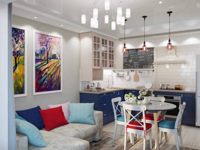 Ways to place a sofa in the kitchen: