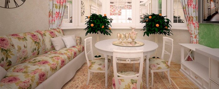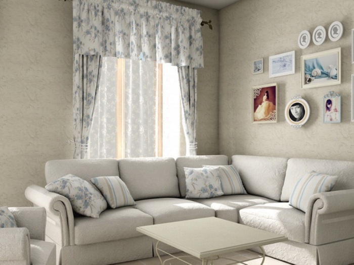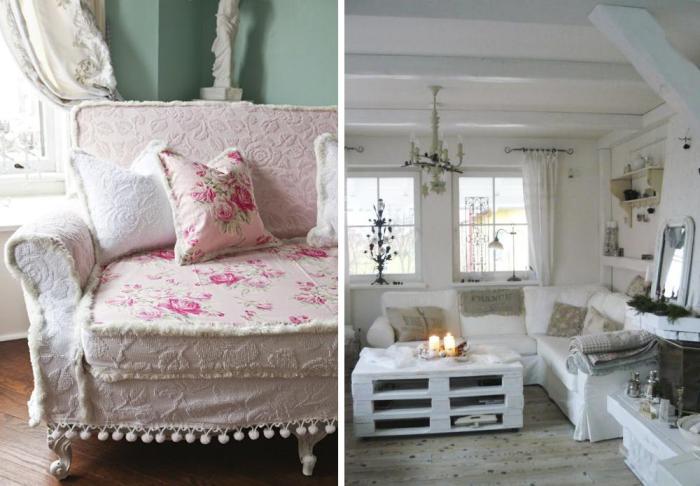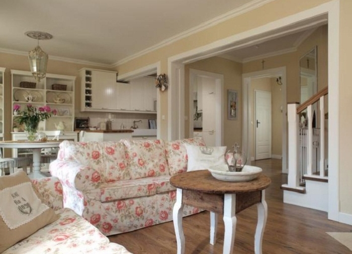 - only natural fabrics are used for upholstery, the color scheme consists only of light shades, a floral print is possible;