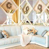 - Such furniture is also suitable for zoning the room, for example, when it is necessary to distinguish the border between the kitchen and the living room. It is better to stay on models with soft upholstery.