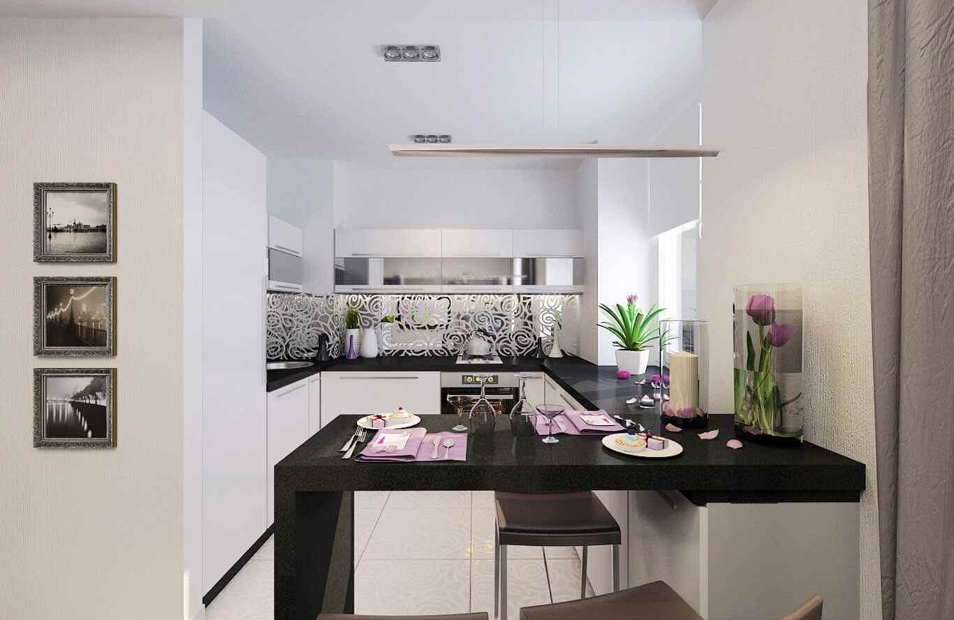 - In some families, they all come together only in the evening and eat in the living room by the TV, discussing the news and events of the day. A kitchen with a breakfast bar or an extended windowsill with a worktop where they can have a quick bite is suitable for them. They will have dinner at the full dining set in the living room.Then this should be reflected in the design of a large guest room with dining function.