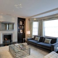 The sofa in the bay window is made independently or under an individual order. Built-in furniture of this type is very popular, having convenient storage places in the lower, lateral parts. A small coffee table is placed in front of the sofa, which is suitable in shape and style, and in order to get up from it as comfortably as possible, they place a mat of a suitable size.