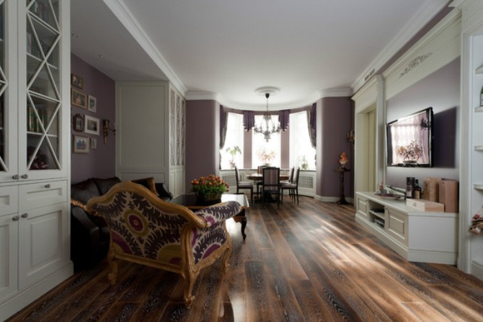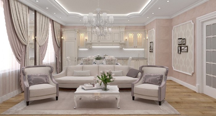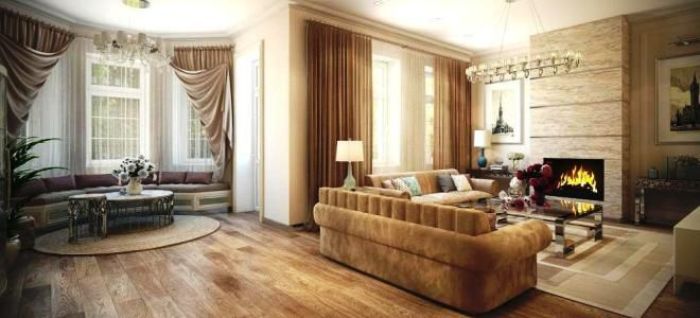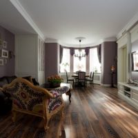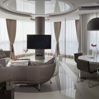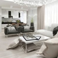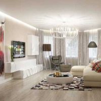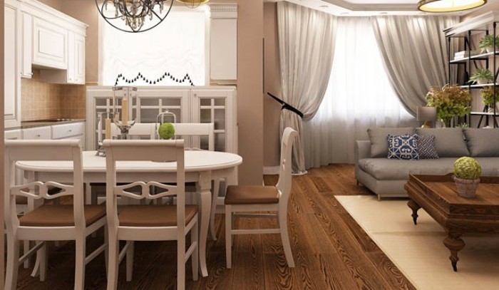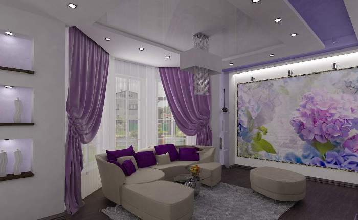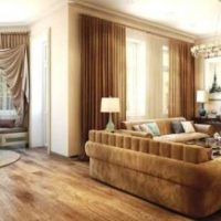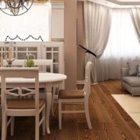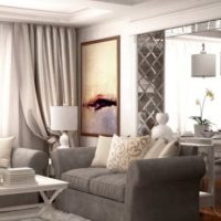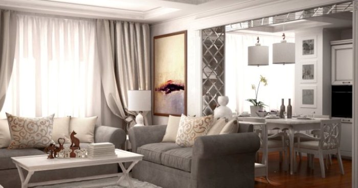 A feature of the described area is that there are large windows and a lot of light, because almost any combination of colors is acceptable - the choice depends on the planned interior style. It should be borne in mind that dark tones visually hide the area of the room, light tones expand it.