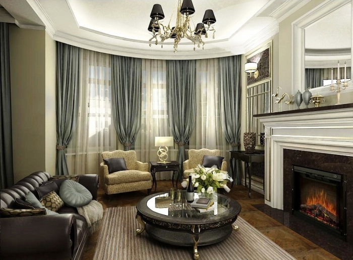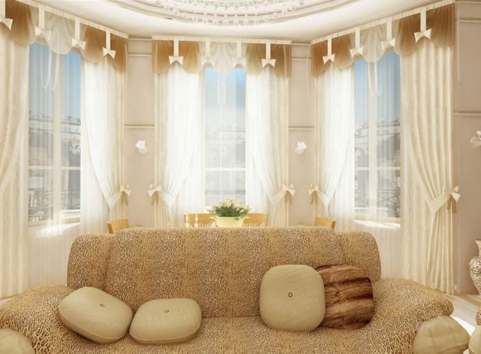 In the design of bay windows, special attention should be paid to the choice of curtains.