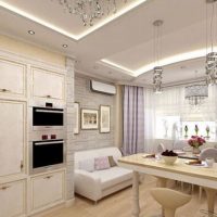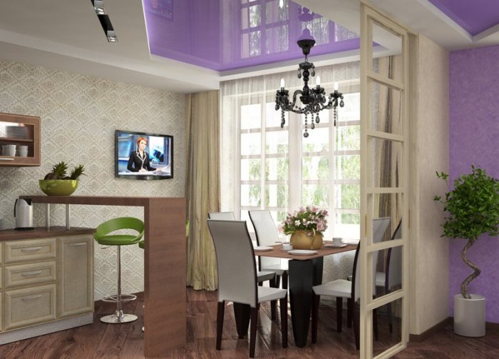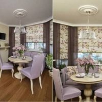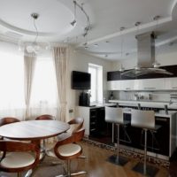 Experts do not recommend cluttering a bay window with high furniture such as shelving, any cabinets, hanging shelves. One of the most important moments when planning a kitchen is to maintain the integrity of the space, but at the same time to carefully zon the room. It is separated from the rest of the room by a thin curtain or a folding screen, a step or false columns, a bar counter or a pair of plants in flowerpots placed so that it is not too easy to touch and knock over.At the same time, the entire kitchen is decorated in a single style - classic, oriental, Provence, loft, high-tech, art deco, any other.