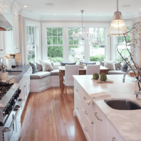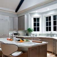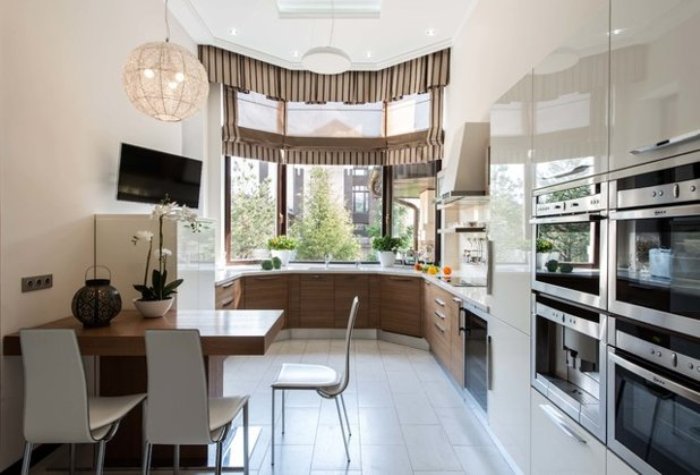 In any apartment, the layout of a large or small kitchen with a bay window looks very original.The kitchen room is always multifunctional, the bay window space allows you to conveniently place an additional zone - a place for cooking or a meal, a mini-office or a sitting area, a sofa, a sports area, a children's playroom.