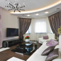 Curtains are designed to hide the tenants of the apartment from prying eyes. The windows of the bay window facing the sunny side are draped with dense curtains on a special round cornice. For large spaces, lush, multi-layer curtains are purchased, roller or blinds are more suitable. If the bay window is facing the dimly lit north side, dense tulle is enough. There are cases when the windows are facing “into the forest” - there are no other buildings, there are practically no people walking here and you can do without curtains at all.