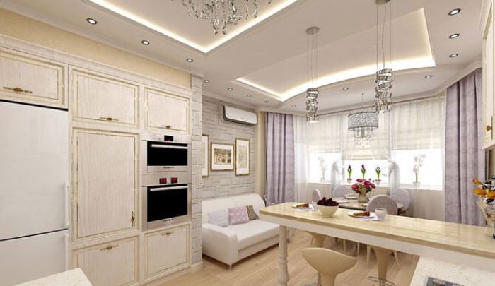 - 3 Pros, cons of the kitchen-living room interior with bay window