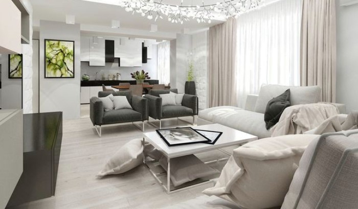 - zoning is made quite clear, but the space should maintain maximum integrity, a unified interior style;