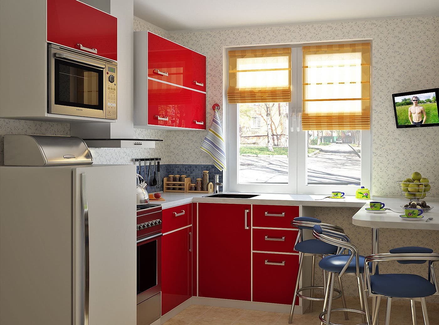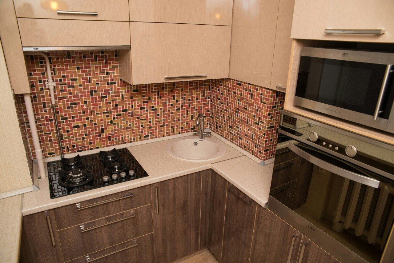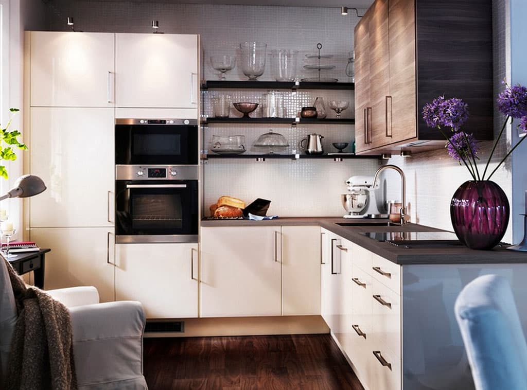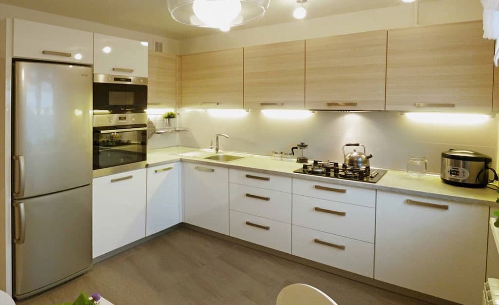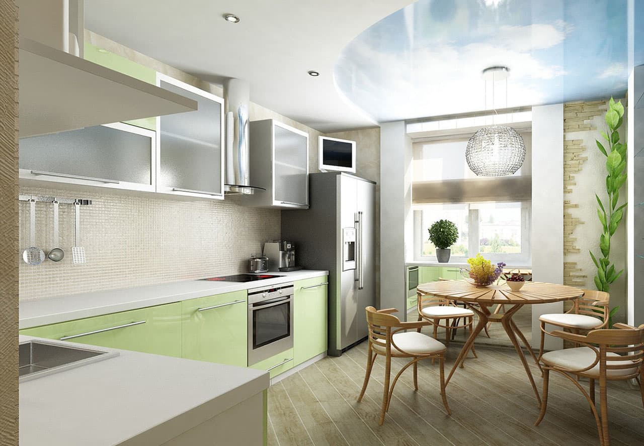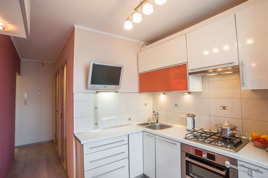 During registration such the kitchen You can use the following design life hacks to help visually increase the area: