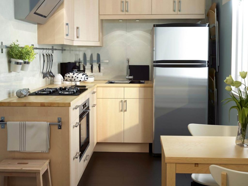 Depending on the area of the room, it is necessary to select and layout kitchen set.