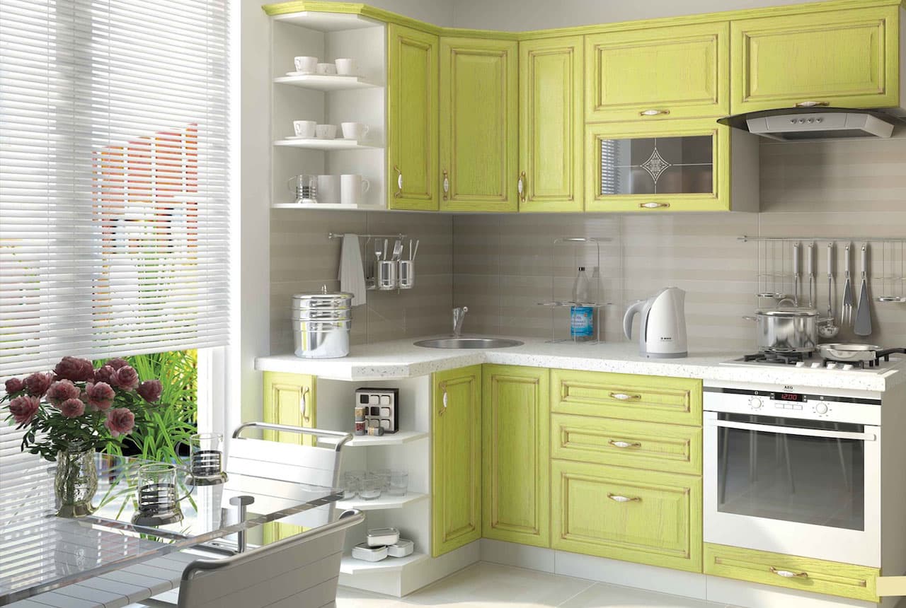 | Corner Headsets | L-shaped layout allows you to arrange all work areas in close proximity to each other. | Corner kitchen can be installed in a room of any quadrature. |