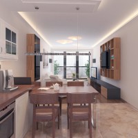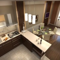 A rational option would be an islet of the dining area, which on the one hand is intended for storing supplies, and on the other hand is a dining area. This will further save the kitchen space.