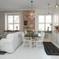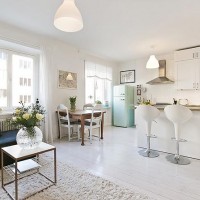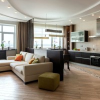 To design the interior of the space, it should be borne in mind that the kitchen area should be located next to the communications system. In the houses of new construction, the placement of "kitchen-living room" is considered standard and does not require the transfer of communications, does not interfere with residents from the lower floors.