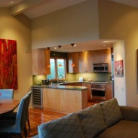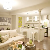 - The television is located in such a way that it can be conveniently watched from anywhere in the room: while cooking, and relaxing on the couch.