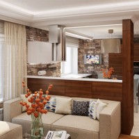 To decorate the interior of the space, it should be borne in mind that the kitchen area should be located next to the communications system