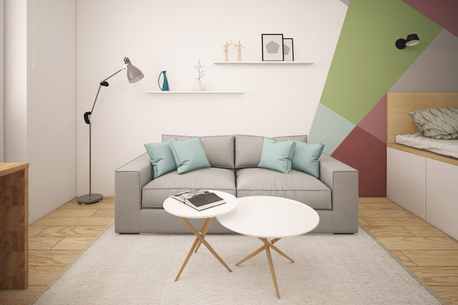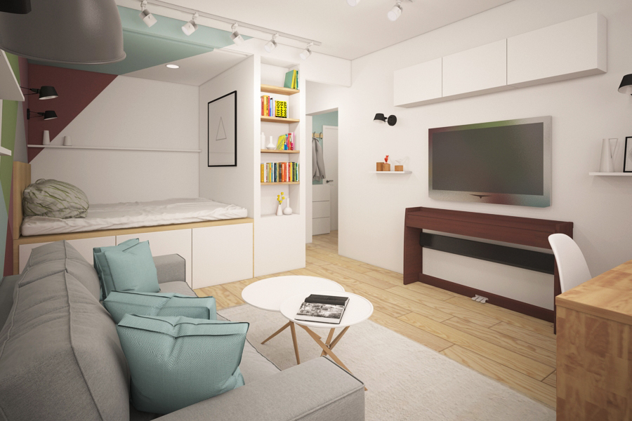 For cramped spaces, the use of combination furniture is appropriate, for example, a podium bed with drawers for storage