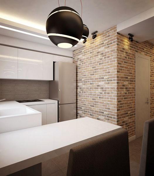 For the loft style, the perfect combination of aged brick with plastered walls in light shades