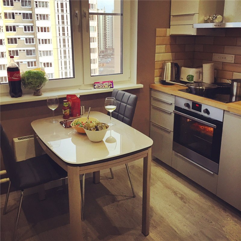 Simple and ergonomic furniture designs are what distinguish this style and slightly bring it closer to minimalism. And for the project of a small apartment of the p44t series, this is especially true.