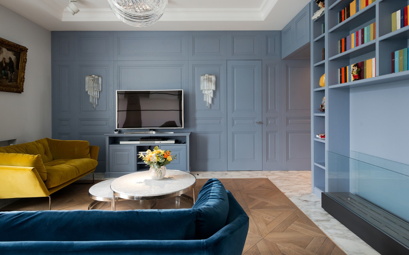 There is no need to worry about the decoration of the ceiling of the house in this project, because it is enough just to restore it a bit. Stucco molding and complex tension structures - this is definitely not about an apartment in the loft style.