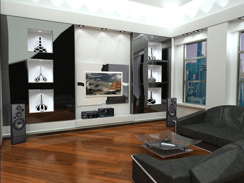 Gray laminate on the floor to match the overall design of the living room