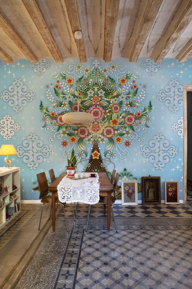 And you can hang an image of a spreading family tree, candelabra, all kinds of candlesticks, chandeliers, family services, following the old noble traditions. If the dining table is near the wall, then it’s not bad to highlight this wall. You can use a different ornament, color, type of decoration, and if you are an artist - take a brush, paints and create in your hand. To decorate the dining table, you can put a vase of fruit on it.