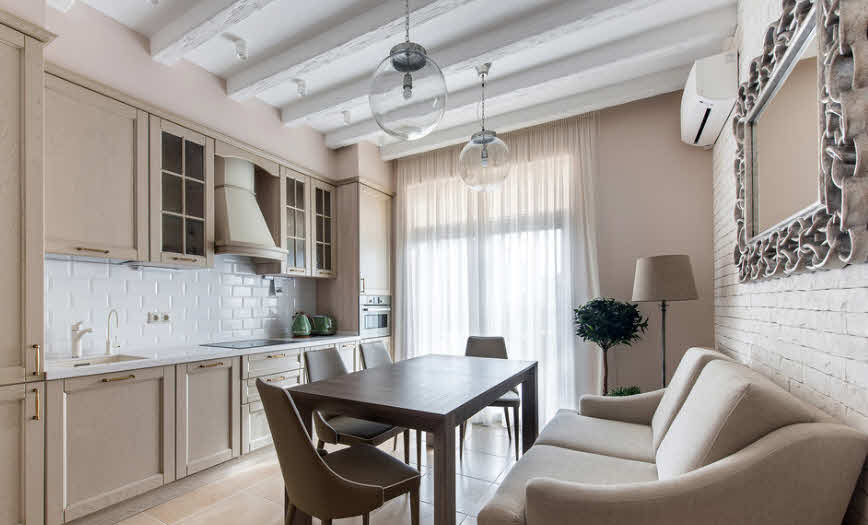 Everything that is used as a decor for walls, furniture, lighting, textiles should create a common image and concept in perception, while not contradicting convenience and functionality. But one must also work with imagination carefully - do not oversaturate the kitchen and litter the space. Follow the principle of ergonomics. You should not put the stove in the corner. This will cause a lot of inconvenience. The kitchen should be easily ventilated, have excellent ventilation and exhaust. It is necessary to exclude areas of accumulation of smell, soot, dampness. Be sure to treat the walls from insects and other pests to the final decoration and furnishings with furniture and appliances.