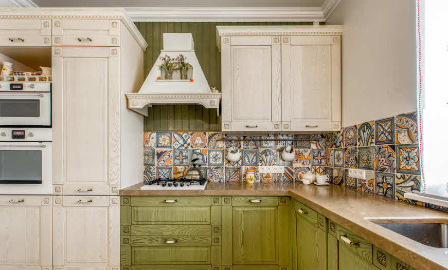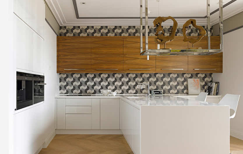 In the kitchen, it is appropriate to combine finishing materials based on the functionality of a wall segment