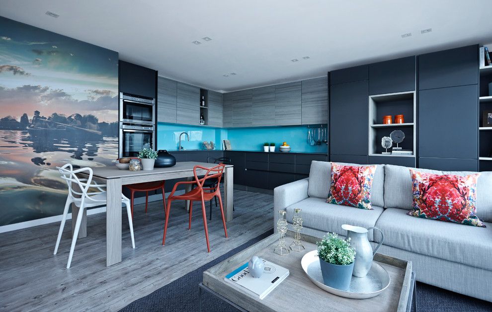 The kitchen looks very original with the use of PVC and MDF wall panels in decoration. Gives individuality to the wall panel, which distinguishes a large-scale section of the wall or the entire wall, depending on the theme and materials for the panel (shells, fabric, wood, etc.). Very successfully, the interior uses modular paintings that combine a common design style. It looks very stylish and modern.