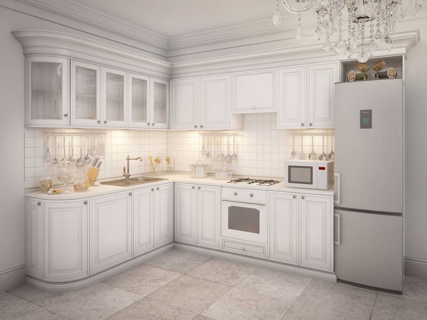 The interior of the luxury kitchen in white