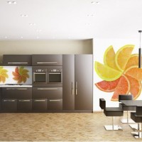 You can purchase self-adhesive murals in the kitchen. They are suitable even for uneven walls and do not require glue. Moreover, you can glue and peel them several times if something does not work out and there is a need for alteration.