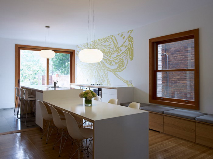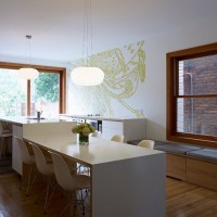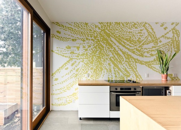 Wall murals with geometric shapes can organically fit into the interior of a modern kitchen