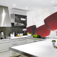Unlike standard materials, large pictures allow you to make the kitchen original and individual. However, the solution is not very popular in the design environment, as with improper care it quickly fails. But if you purchase high-quality material on a non-woven basis with an upper dirt- and water-repellent layer, there should be no problems with cleaning and the duration of operation. The presented products do not absorb water, dirt and grease, are not afraid of mechanical influences and do not lose color under the influence of sunlight.