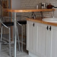 But with the help of this element you can significantly save the space of the room. In small kitchens of apartments of the Khrushchevka type, it will help to combine a dining table with a functional surface. This will unload the room and make it more spacious.
