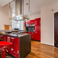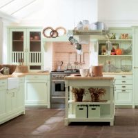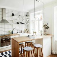 - Central. For zoning, the space is located in the center of the kitchen and divides it into a dining and working area