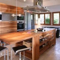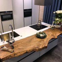 Important! When choosing wood for countertops, it is important to take into account the strength of the massif, its resistance to wear (drying out, the appearance of cracks and gutters), as well as resistance to chemicals. Such a tree as oak, maple, pine is ideal. Do not recommend using birch.