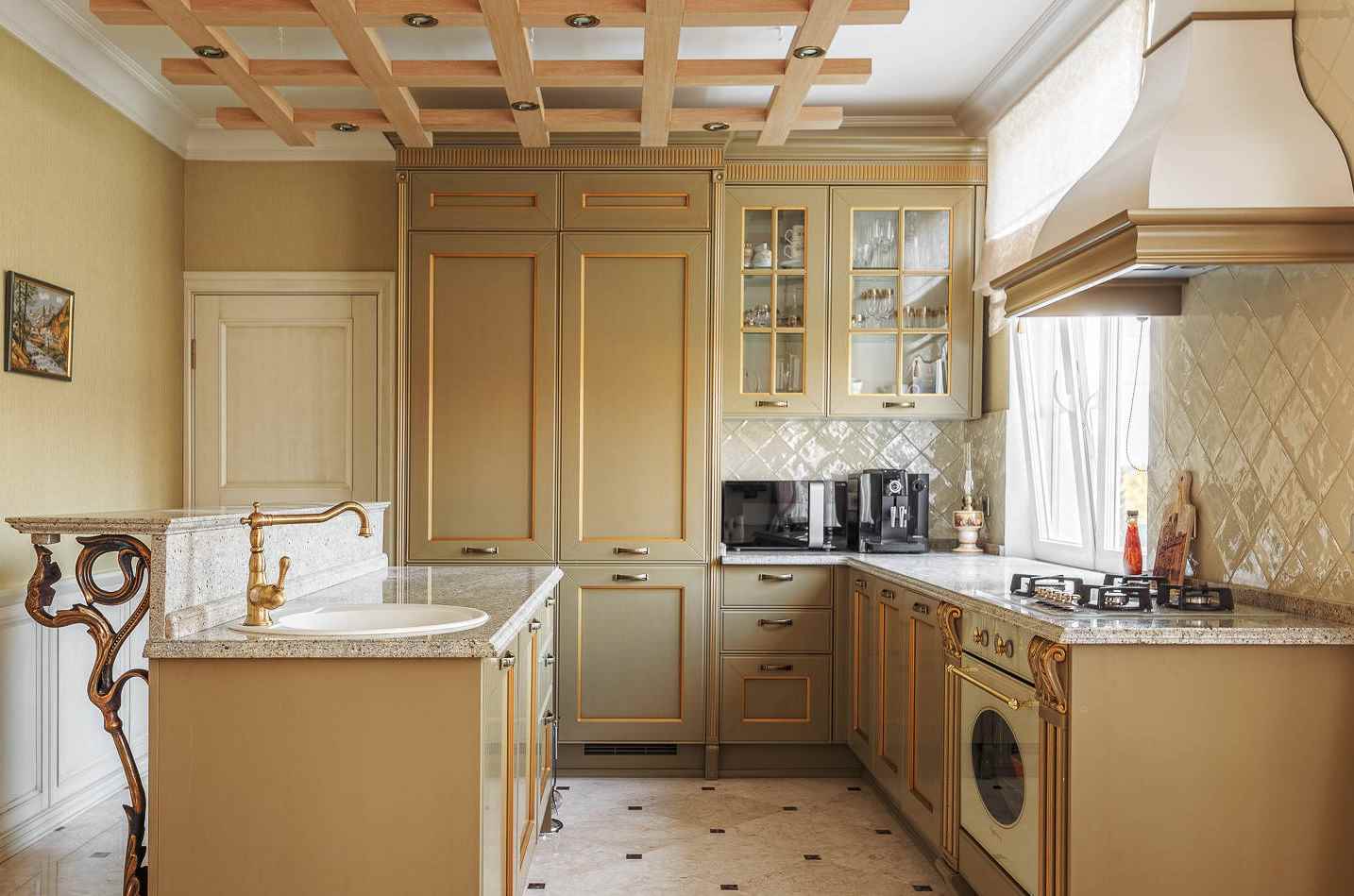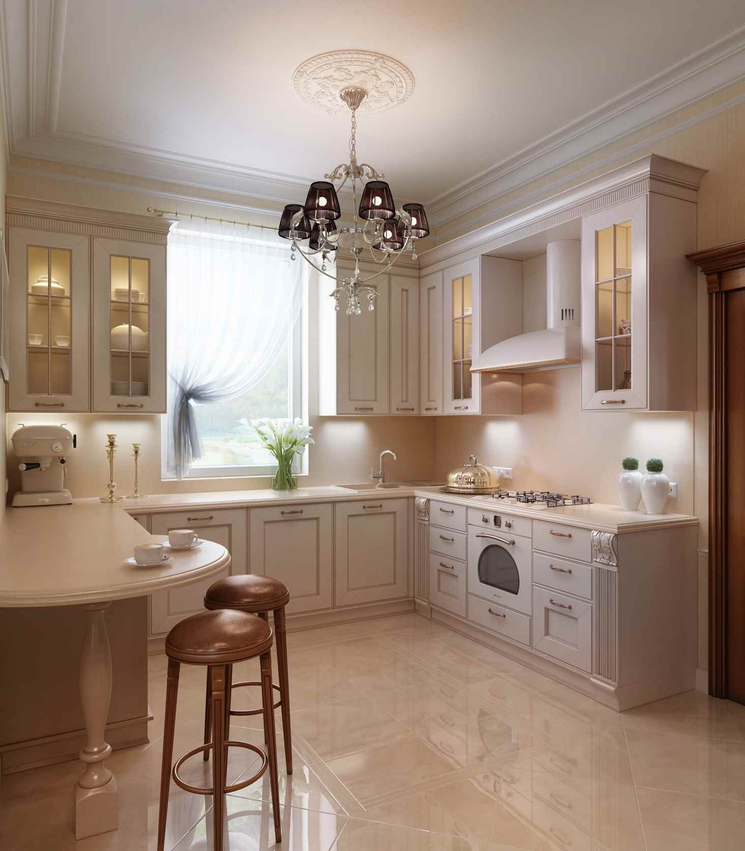 Even in a small kitchen you can create an interior in a classic style