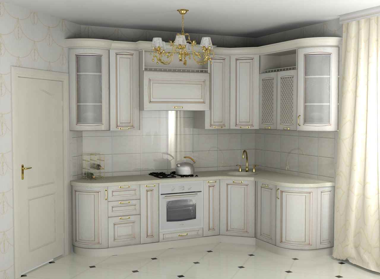 The housing of rich people in the XVII-XVIII centuries, when the interior classic was born, was distinguished by pomp, elegance and spaciousness. Therefore, most often, designers agree to create a classic kitchen in vast spaces with an area of at least 15 sq.m. and high ceilings (2.9-3.5 meters). Such parameters allow you to comfortably combine the cooking area with the dining corner (dining room). But, thanks to the light colors that prevail in this style subspecies, you can transform a small room.