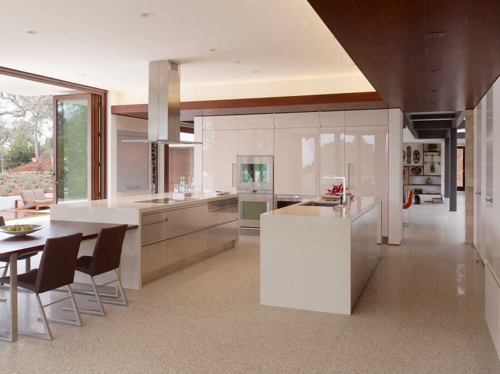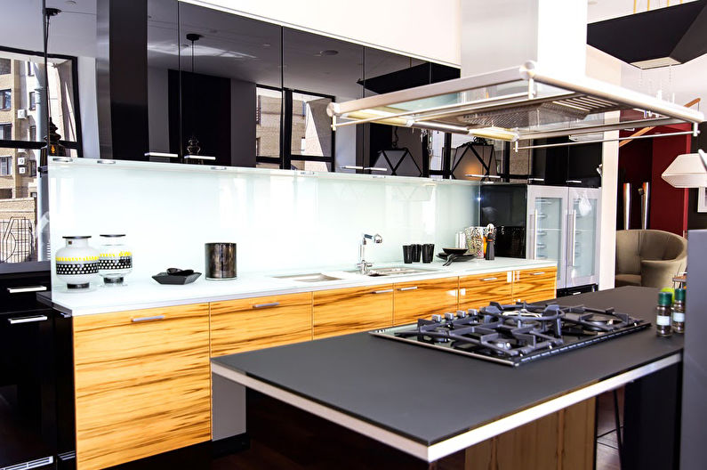 Modern in the kitchen the interior - An ideal solution for lovers of restraint, conciseness and relevant ideas. It harmoniously combines romantic classicism, strict and restrained minimalism, multi-functional high-tech.